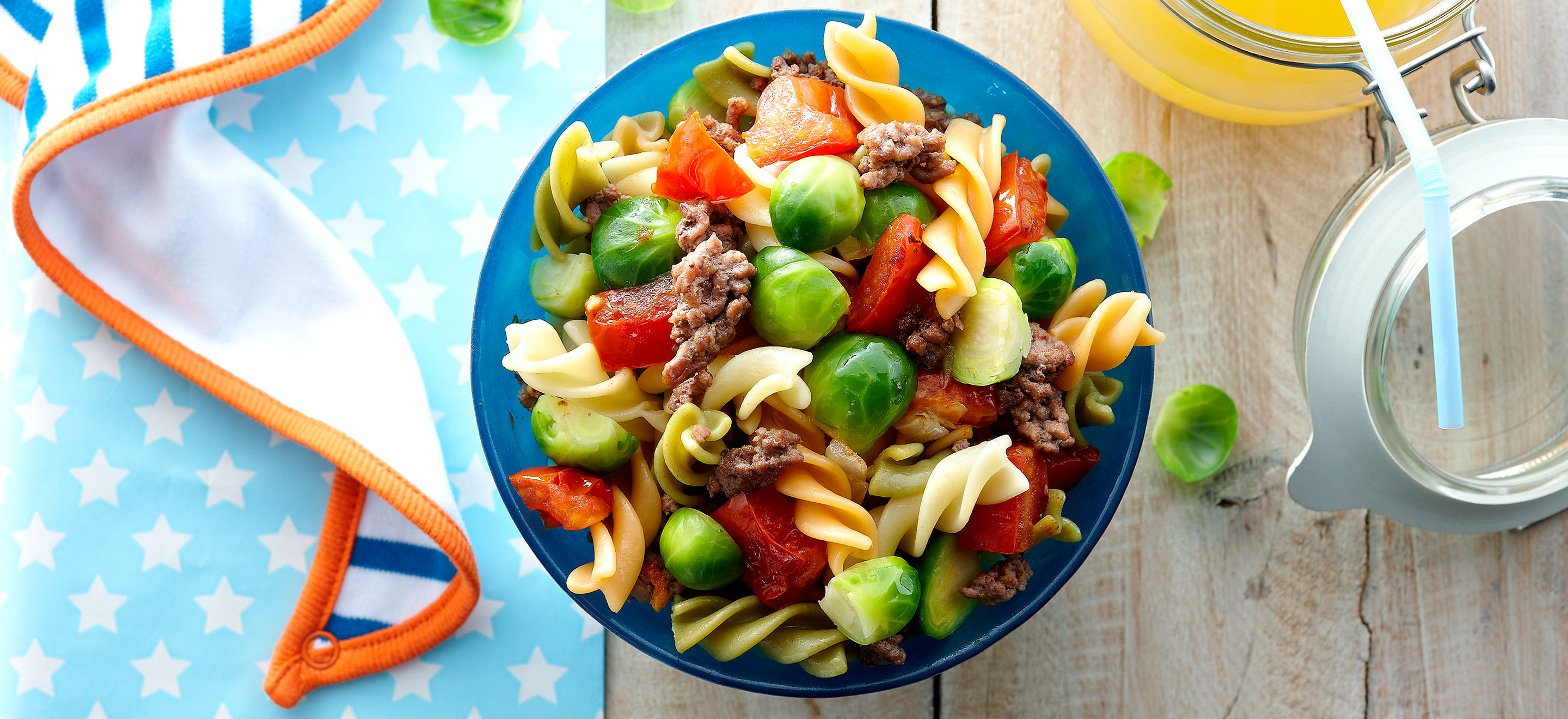 Pâtes aux choux de Bruxelles et à la sauce tomate